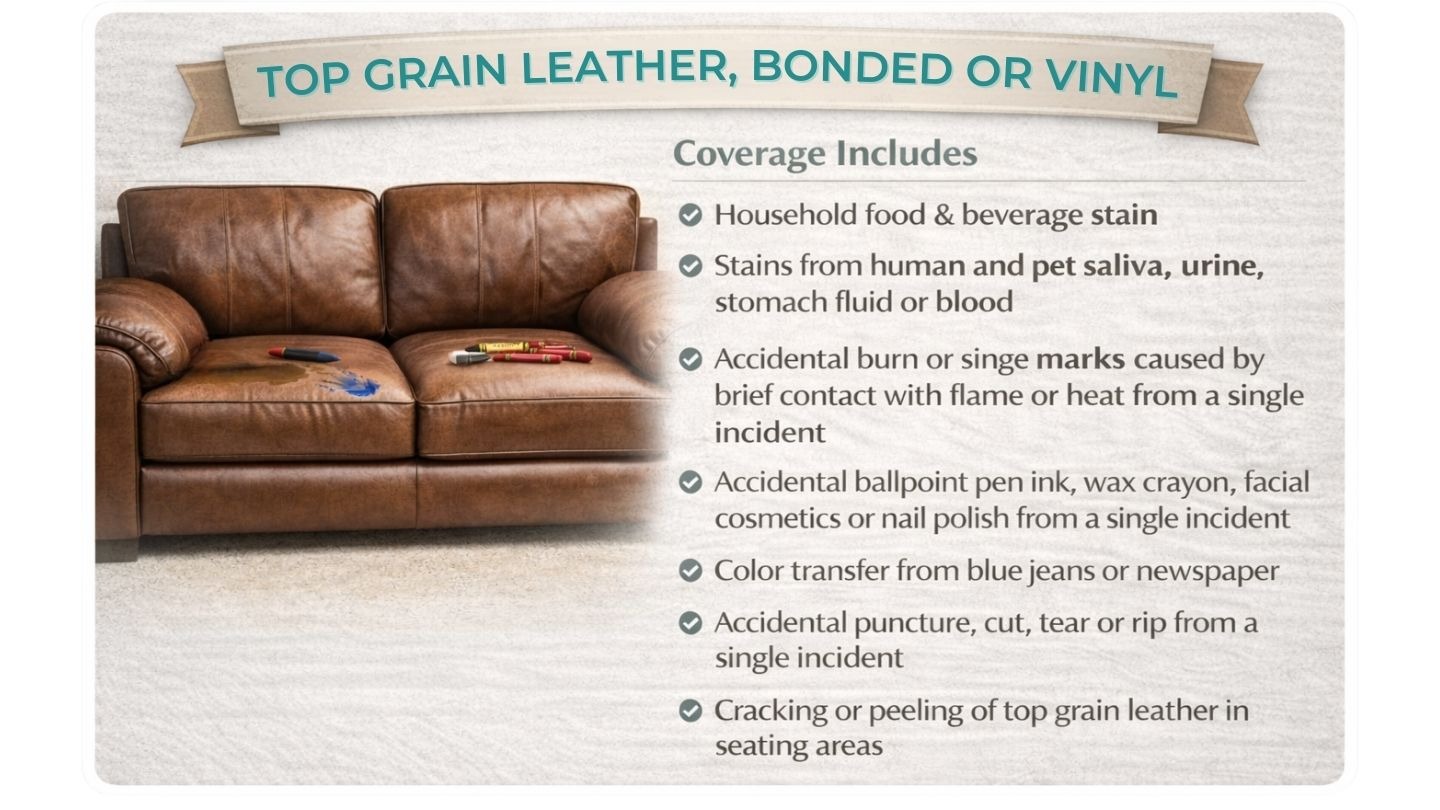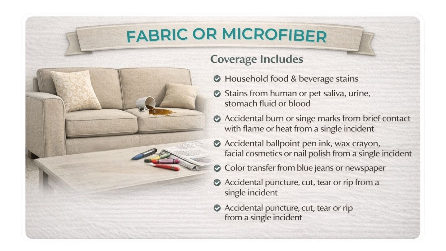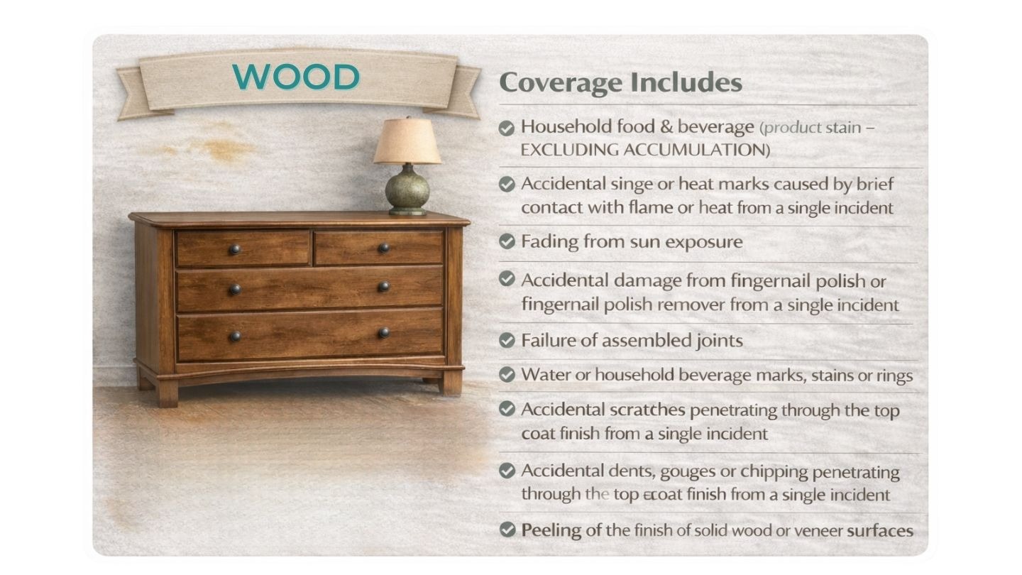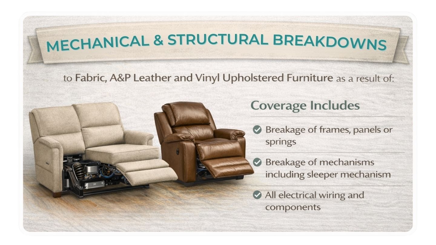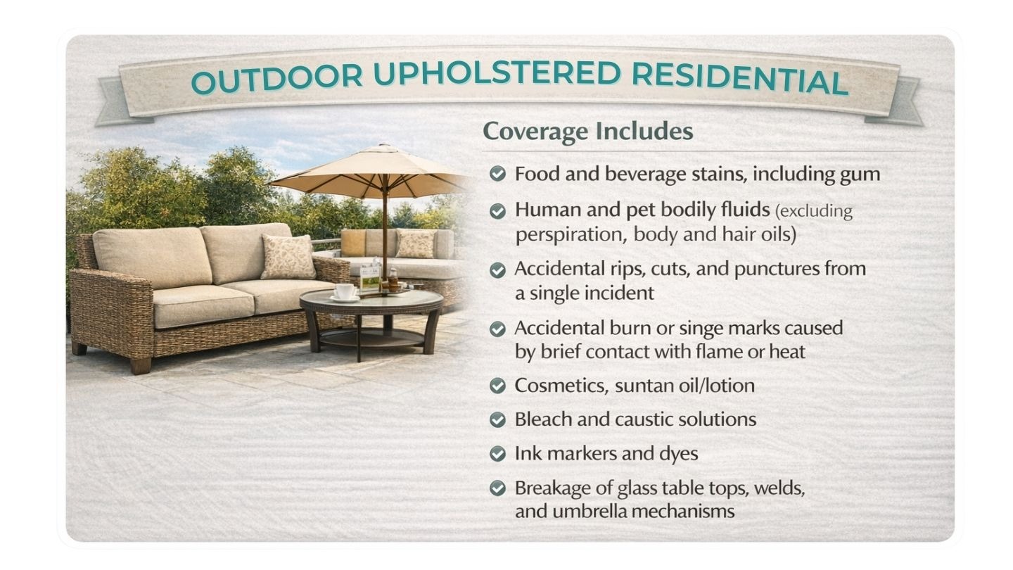 Protect your investment with our 3 Year Replacement Plan, designed to cover real life accidents that happen in busy homes. From spills and stains to structural and mechanical issues, this plan offers peace of mind across fabric, leather, wood, and outdoor furniture so you can enjoy your home without worry.